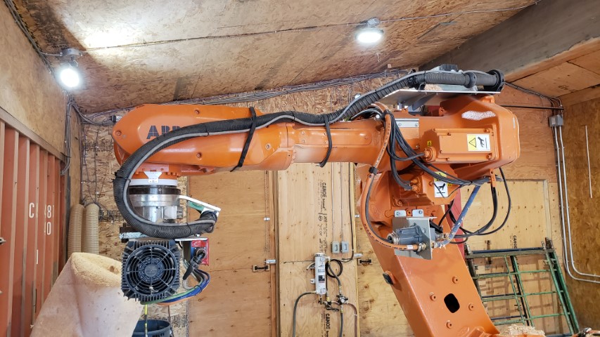 - The Robot will go to start position and stops when the laser is on top. Laser will be turned on for marking the log