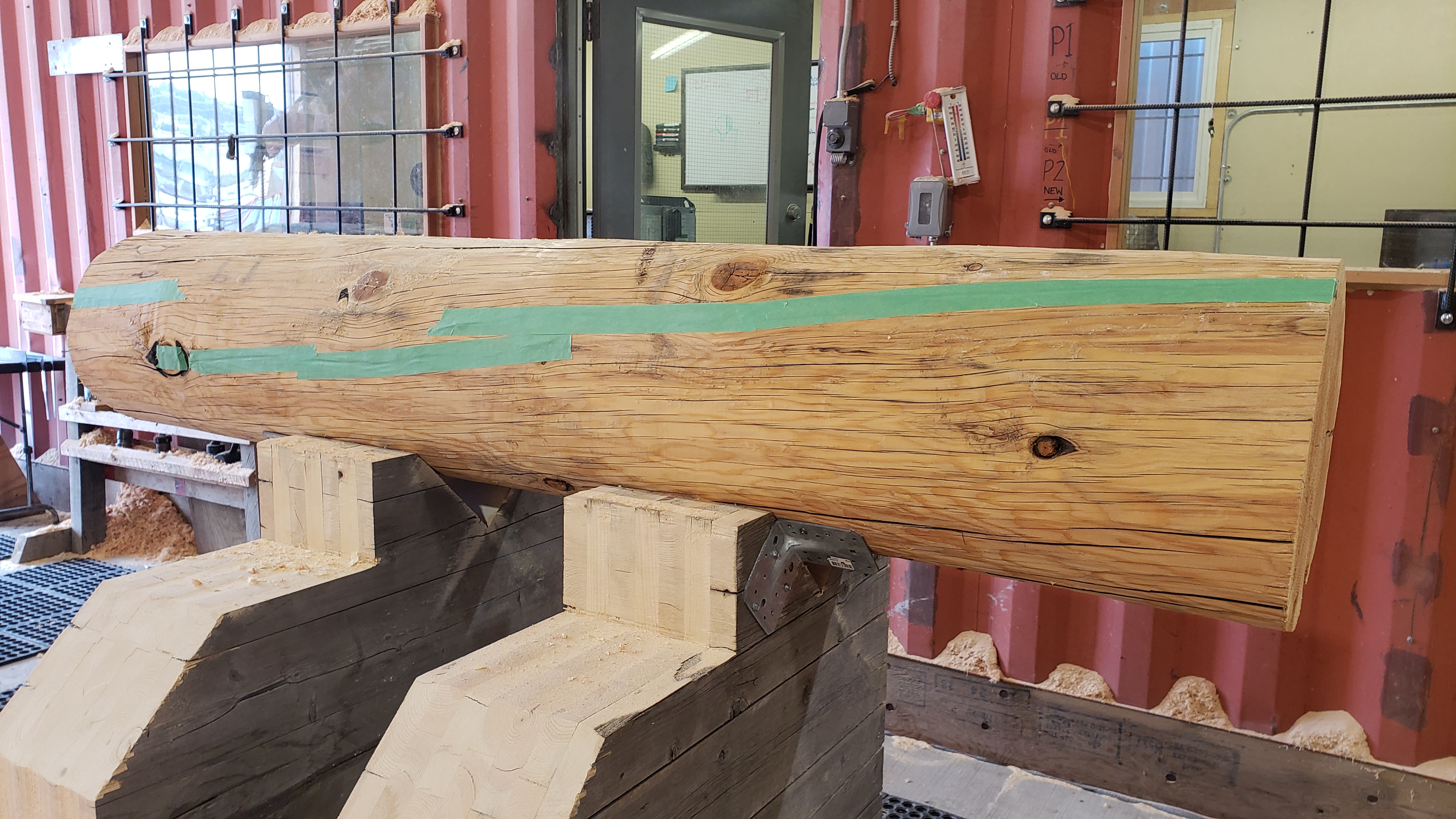 Cracks in a log can make your life really difficult when you use the scan to calculate a scribeline because the cracks will be scanned. While humans ignore the scan and still see the whole log, the scanner is seeing the cracks and will take them as what it is - a surface of the log. The resulting scribeline calculation will make it really difficult to calculate a scribeline. It can be that the calculation will find a better match in the crack than the surface. Since this is technically correct, it is not what we want.